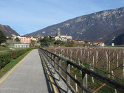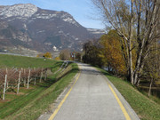 Poco prima di Calliano si attraversa l’Adige su un modernissimo ponte ciclopedonale che porta subito a monte di Nomi;