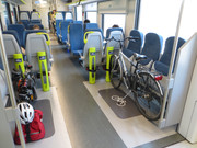 Dalla parte opposta si incontra il primo degli spazi riservati alle biciclette: in questo caso tre ganci per appendere le bici “intere”, e sotto tre sedili ribaltabili ognuno con la staffa per la ruota posteriore. Ovviamente una pieghevole chiusa trova ampio spazio.