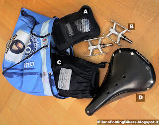 mentre la transport bag può essere messa nel suo sacchetto che è predisposto per essere attaccato sotto la sella..