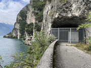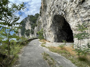 Dalla fine della ciclabile si può raggiungere il sentiero della Ponale svoltando a sinistra e salendo fino alla sommità del muro ad archi.