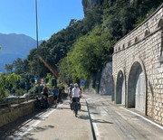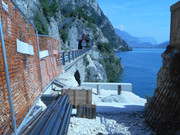 La passerella di Limone ("Garda by bike") è ormai storia, con numeri di frequentazione più che lusinghieri; nel frattempo sono partiti da Riva del Garda i lavori del tratto trentino: per ora il cantiere è solo di un breve tratto, da Riva fino al torrente Ponale (circa 1 km), sulla vecchia sede della strada statale, già in parte utilizzata come passeggiata pedonale, e sembra promettere bene: