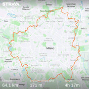 https://www.bici.milano.it/abbracciami/La lunghezza totale dovrebbe essere sui 70 (settanta!) km, ma c'è di buono che lungo la strada si intersecano un po' tutte le linee ferroviarie, tranviarie e di metropolitana che irradiano da Milano, per cui in caso di crisi è abbastanza agevole interrompere e rientrare a casa in intermodalità.