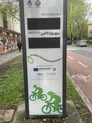 La ciclabile parte dal capolinea della metropolitana 3 in piazza IX Novembre 1989 (per chi non lo ricordasse - come me, sono andato a cercare su Google - è la data della caduta del Muro di Berlino) dove si trova un totem contapassaggi (peraltro spento...) e percorre la via Caviaga;