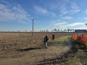 Risolto uno, eccone un altro: poco prima di Soarza la ciclabile è interrotta per un cantiere, presumo di consolidamento dell’argine (da queste parti le nutrie abbondano, e fanno danni). La prima barriera la superiamo, in modi che non sto a descrivere per non fornire prove incriminanti, ma la seconda ci blocca e siamo costretti a scendere, tramite una provvidenziale scaletta, al piede dell’argine, dove corre una stradina che purtroppo si rivela estremamente fangosa: qualcuno prova a mettersi la bici in spalla, io neanche ci provo, un po’ perché la Espresso non è una piuma e un po’ perché tanto è già infangata…