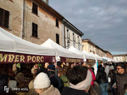 (entrambe foto Peppe)e la solita difficoltà a recuperare qualche panino per accompagnare affettati, ciccioli e Gorgonzola. Purtroppo quest’anno anche il “nostro” chiostro è stato invaso dalle bancarelle, privandoci della nostra comoda sistemazione al coperto e col muretto a mo’ di tavola.