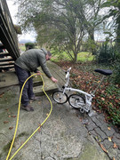 (foto Peppe la seconda)saremmo pronti a ripartire, ma a gentile richiesta ci viene concesso di utilizzare il tubo per innaffiare l’orto per dare una ripulita alle bici.