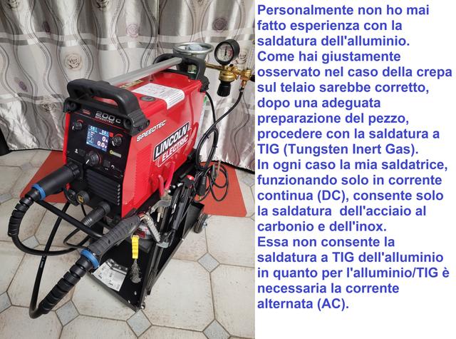 Ciao miciobigio. Non riesco a capire, dalle foto che mostri, dove sia la criticità della saldatura. Se ti riferisci alla saldatura di cui fai vedere il dettaglio non sembra danneggiata. Non è la saldatura più ben fatta che abbia mai visto ma non vedo cricche o difetti particolari. Piuttosto indagherei questa zona: